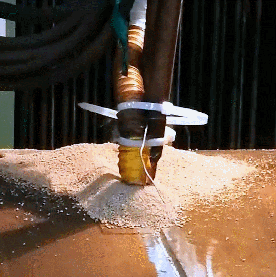 試驗初期,在DN800鍋筒環縫上焊接時發生的熔敷金屬濺出。